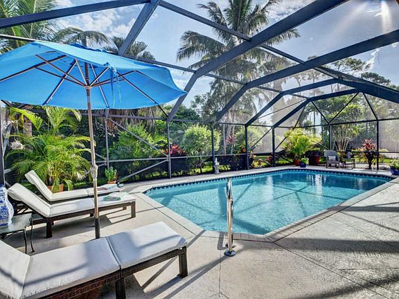 **Stunning, model-perfect home with gorgeous resort-style pool/patio and tropical paradise setting on .24-acre private, fenced lot! **All new impact glass!! **Designer touches throughout **High-quality fixtures, finishes, lighting and custom window treatments **Updated kitchen with double pantry and breakfast area overlooking your private resort **Secluded Master Suite also opens to patio, offers spacious walk-in closet and impressive, Carerra marble shower which has a built in bench and niche**Vaulted ceilings, split bedroom floor plan, lots of glass for beautiful natural light **Sliders from living area and master bedroom access great outdoor screened living space **Guest wing offers wonderful privacy **Inside washer/dryer **See more