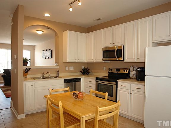 Stylish & Modern w/Great Updates. NEW..Paint, Stainless appl, lighting/fixtures. Spacious Living/Dining Rm w/NEW hardwood style flooring, fresh neutral paint & arched opening into Kitchen. Lrg picture window offers view of n'hood streetscape. Eat-in Kitchen w/new appliances, extensive white cabs & tile flooring. Vaulted Master w/private Bath. Private Patio great for grilling out. HOA dues covers Pool. Ultra-convenient location close to Umstead, RDU, RTP, hwys, Crabtree & Brier Creek shopping & dining!