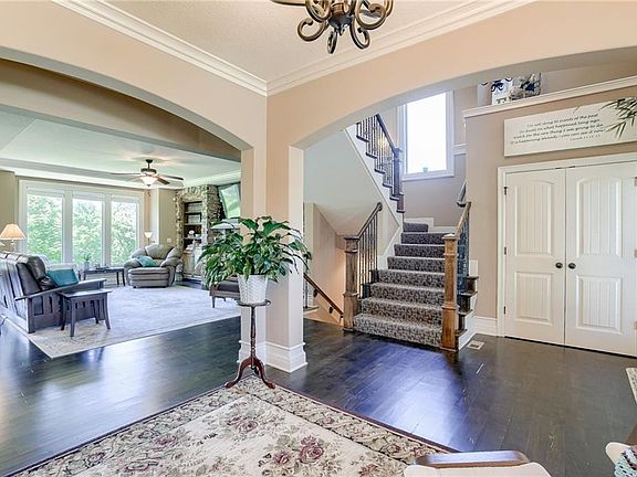 Welcome Home! As you pull up, you are wowed with amazing curb appeal and grandness of this home. The crisp landscaping is sure to delight in all seasons! This generous 2 story offers so many upgrades. As you enter you are presented with a 2-story entry and open concept floor plan. The living room opens to the kitchen and dining room and has a gas fireplace encased with gorgeous stone and built-in bookcases. The kitchen is perfection with stainless steel appliances including a gas range, built-in microwave and walk-in pantry. Don’t miss the first-floor office/bedroom with access to the covered back deck that overlooks the gorgeous backyard. The second floor offers 4 spacious bedrooms starting with the primary suite that has a sitting room offering great flex space, ensuite bathroom with jacuzzi tub, double sink vanity with an abundance of cabinetry and walk-in shower. The walkout basement is the perfect rec space with another living area, kitchenette & a 6th non-conforming bedroom. Bring your own finishing touches to this amazing space. The fenced-in backyard is spacious and private. This house is a complete package with close proximity to major highways, restaurants and entertainment. It is a MUST SEE!
