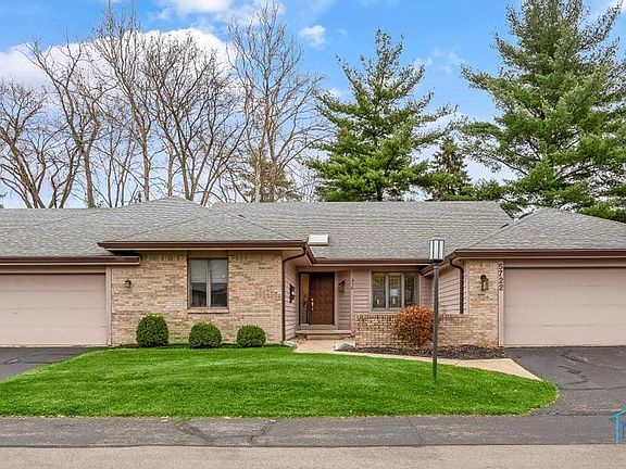 Beautifully renovated villa in one of the best Sylvania locations. Open layout with volume ceilings & skylights, circle top windows with plantation shutters. Quality wood, marble and tile flooring. Master bathroom remodel is outstanding. Updated eat-in custom Kitchen with premium cabinetry, granite counters and stainless appliances. Family Room with fireplace & built-ins opens to Sunroom. Side patio off Sun Room overlooks expansive side yard. Front patio courtyard is a unique feature. Basement Rec Room remodeled in 2021. Garage flooring has been updated with the "nature stone" product. Mint!