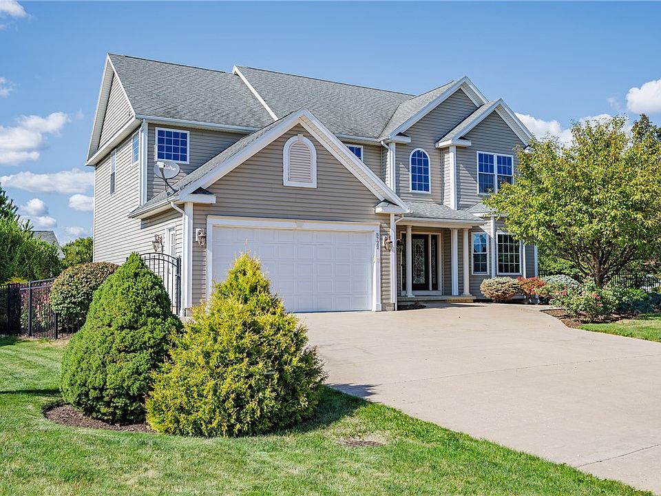 RARELY AVAILABLE IN THE ROYAL SPRINGS NEIGHBORHOOD. ***THIS ONE IS A 10+++!!!!!!**PRISTINE, CUSTOM BUILT BEAUTY WITH EVERY IMAGINABLE UPGRADE!!!** GLEAMING HARDWOODS THROUGHOUT**DESIGNER CROWN MOLDINGS AND CASINGS**DELUXE GOURMET CHEF'S KITCHEN WITH STAINLESS APPLIANCES,GRANITE COUNTERTOPS, AND LARGE PENINSULA ISLAND WITH BREAKFAST BAR AND SUNNY BRIGHT BREAKFAST ROOM!!!*NEW FURNACE AND CENTRAL AIR 2024**CENTRAL VAC**2ND FLOOR LAUNDRY INCLUDES WASHER AND DRYER**TWO STORY FOYER ENSURES A GRAND ENTRY.... SPACIOUS FAMILY ROOM PLUS ADDITIONAL "FLEX" SPACE FOR LIVING ROOM OR OFFICE** UPSTAIRS ARE FOUR BEDROOMS AND TWO FULL BATHS INCLUDING THE STUNNING, VAULTED PRIMARY ENSUITE WITH JETTED TUB, SEPARATE SHOWER AND HUGE WALK IN CLOSET. FINISHED LOWER LEVEL WITH NEW CARPET, HALF BATH AND BELKO DOORS. EXPANSIVE TREX DECK WITH HOT TUB!!! SEPARATE OUTBUILDING IS TRULY THE BEST "MAN CAVE" GOING!!!! PERECT SPACE TO STORE YOUR TOYS OR FINISH IT OFF FOR A SEPARATE ROOM THAT COULD BE THE PERFECT "GETAWAY"TO ENJOY A BEER AND WATCH THE BUFFALO BILLS GAMES!! GATED FENCED IN YARD WITH PLAY-SET, BEAUTIFULLY PRIVATE AND PROFESSIONALLY LANDSCAPED GROUNDS & SETTING. PICTURE PERFECT VIEWS THAT ARE TOTALLY P-R-I-V-A-T-E !!!! LESS THAN 17 MINUTES TO ROCHESTER
