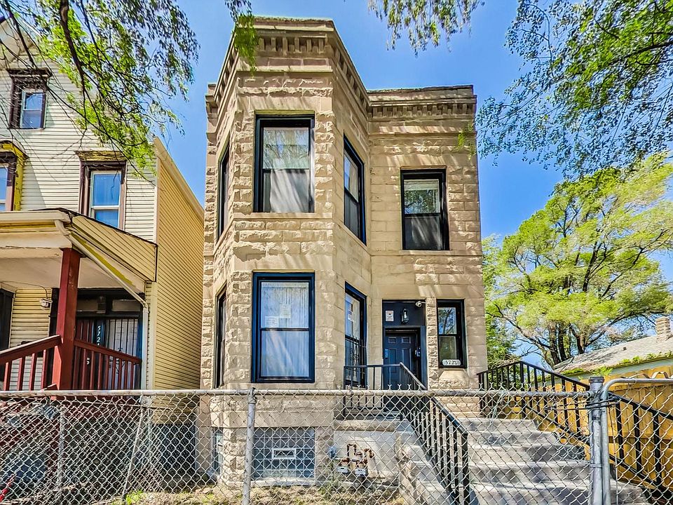 Stunning Graystone. This beautifully updated 2 unit with 1st floor duplex down consisting of 3 bedrooms and 2 baths. Step inside to find an open and inviting floor plan with 10 foot ceilings, crown molding w/rope lighting detail, amazing feature walls and electric fireplace. Oversized windows allow for tons of natural light. Down the hall you have an updated kitchen boasting sleek quartz countertops, under cabinet lighting & trendy tile backsplash. The dining area flows effortlessly from the kitchen, making it perfect for entertaining. The full basement adds extra living space, perfect for a movie room, home gym, or office. 2nd fl unit is also completely updated with similar finishes and upgrades making this unit more then move in ready. Outside, enjoy a fenced backyard perfect for summer hangouts and concrete pad for parking. Newer rear porch, basement has drain tile, updated plumbing, electrical and HVAC. Schedule a showing today.