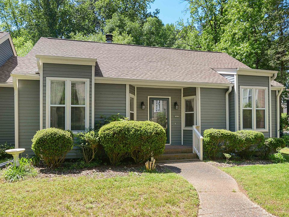 Move in ready ranch style townhome in prime N Raleigh location. Split bedroom floorplan. 9 ft ceilings. Hardwoods throughout most of home. Fresh interior paint. New gas pack 2015. New roof 2020. New water heater 2019. Spacious family room features wood burning fireplace. Large formal dining room. Eat-in kitchen offers updated marble countertops, fresh painted cabinets & stainless steel range. Primary suite has newer carpet (approx 3 yrs) & walk in closet. All appliances convey. Fenced in backyard with oversized brick patio + deck. Very popular neighborhood with community pool and garden area.