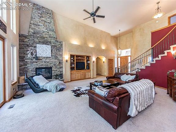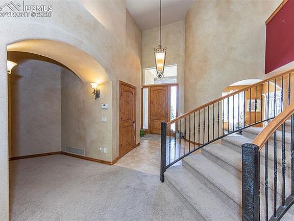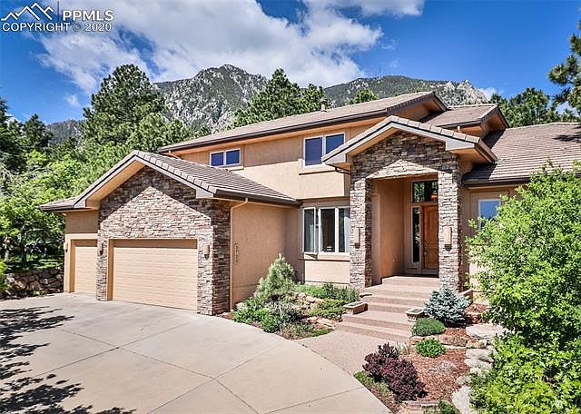 This five bedroom, five bath home is nestled at the end of a private cul-de-sac in The Spires Broadmoor area, surrounded by abundant, mature trees and natural landscaping. The 2 story entry opens to a large great room featuring vaulted ceilings, a floor to ceiling gas fireplace, knotty alder doors and trim and a walk out to the private back deck, perfect for enjoying Colorado summers. The gourmet kitchen finishes include custom hickory cabinetry, slab granite counters and a gas cook-top. In the breakfast room, youll find expansive windows highlighting the natural mountain landscape, a stone faced gas fireplace and a walk out to the back deck. The main level master bedroom suite contains a large spa like bathroom with double vanities, a jetted tub, free standing shower and two generous walk in closets. Also on the main level is a formal dining room, a half bath and the laundry room. On the upper level are two additional bedrooms sharing a full bath, along with a home office space with built in hickory cabinetry, overlooking the great room. The fully finished basement is perfectly appointed for family fun! The family room features a wet bar, custom hickory cabinetry for A/V equipment and a gas fireplace. The attached theater room is perfect for screening your favorite films with family & friends. 2 additional bedrooms and 2 full bathrooms complete this Colorado mountain retreat, located in the state's highest rated school district - Cheyenne Mountain District 12.