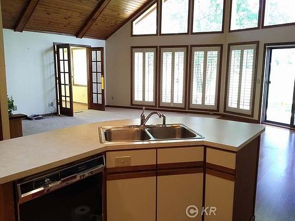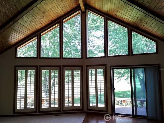 Lovely Sugar Springs Golf Course home on the 18th tee. Enjoy a gorgeous panoramic view of the Sugar Springs Golf Course from the open living area and large open deck. This well-built home features vaulted ceilings, knotty pine ceilings, spacious rooms, gas log fireplace, lots of windows, wooden louvered window blinds, wood laminate, and carpet flooring and more. This well-maintained home has lots of curb appeal and is located on a quiet dead end court. This home is also located just a short golf cart ride from the clubhouse. Enjoy all of the amenities that Sugar Springs has to offer, including an 18 hole championship golf course, two all sports lakes, beach clubs, boat docks, restaurant, pro-shop, tennis courts, campground, sledding hills, walking trails and more.