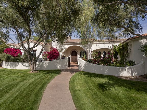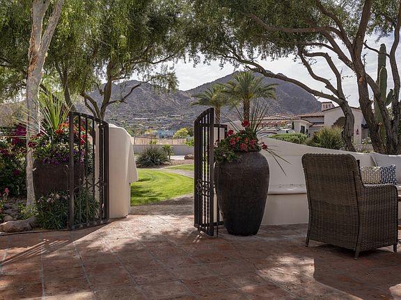 This absolutely charming home built by Nance Construction is on quiet dead-end street. Enter thru a front patio w/ a fireplace, fountain and views of Camelback Mountain. Stunning chefs kitchen opens to the family room & features leathered granite counters, Viking appliances & oversized center island. Soft plaster walls, elliptical arched & high beamed ceilings & tall arched windows give a warm elegance. Spacious master suite with his/hers vanities, double closets & exercise room/sauna. Children's wing on opposite end of the home with 3 additional en suite bedrooms. Plus a separate 5th en suite bedroom. The backyard has a huge covered patio with built in BBQ area, sport court, 2 fire pits & tons of outdoor living space. Resort like pool with lovely garden, citrus trees & large grass area. Property maintenance paid for by Landlord Utilities paid for by Tenant