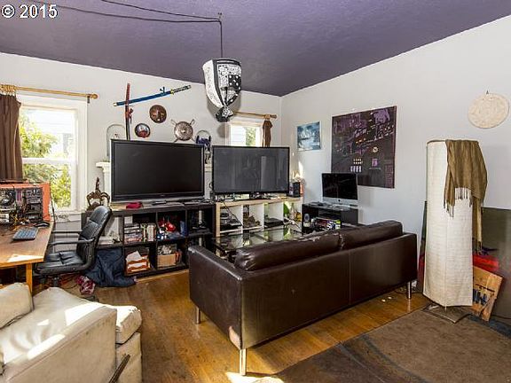 Quaint Portland bungalow. Main floor is open in the round, one of the main floor bedrooms has two doors--one to the hallway, and one off the kitchen. Makes a great office. Attic is converted to large bedroom with skylights. Basement is a blank canvas.