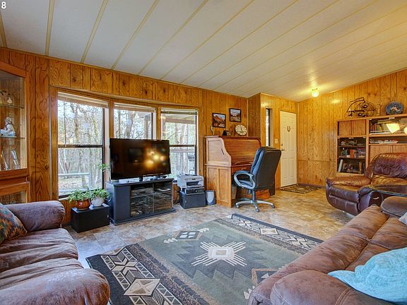 Enjoy country living and room for your horses with the convenience of being close to town! This beautiful 2 bedroom, 2 bath, 1,224sqft home is located on 5 flat acres featuring a riding arena, 4 portable horse stalls with rubber mats and is fenced and cross fenced. The home welcomes you in to the spacious kitchen with plenty of cabinet space, newer appliances and peninsula bar with seating.