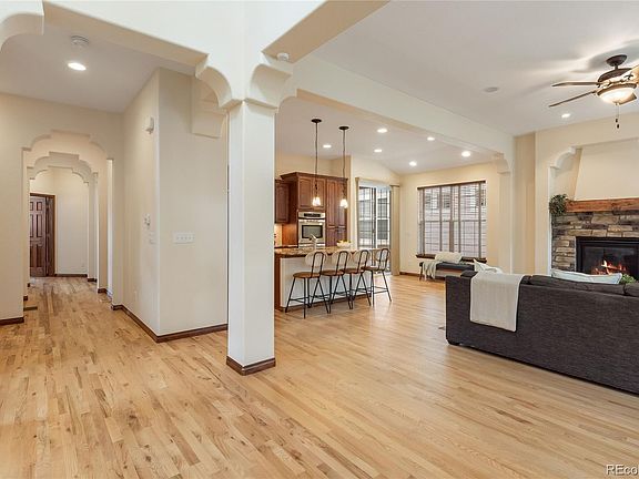 Welcome to this elegantly appointed patio home in the highly sought-after Littleton community of Dancing Willows, offering exceptional curb appeal with two charming covered front patios and professionally landscaped surroundings. Step inside to an inviting Great Room featuring a cozy gas fireplace and elegant mantle, flowing seamlessly into the sun-filled Formal Dining Room—perfect for gatherings. The chef’s Kitchen is a standout with granite countertops, a center island, stainless steel appliances, designer cabinetry, under-cabinet lighting, and a pantry. The adjacent eat-in area opens to a private, fully fenced patio—ideal for outdoor dining and relaxation. The main floor Primary Suite is a true retreat with a 5-piece ensuite bath, walk-in closet, room-darkening blinds, and private patio access. A secondary main floor bedroom also features its own ensuite bath, while the main floor Office showcases beautiful built-ins and double doors. Upstairs, you'll find a spacious Loft filled with natural light and equipped with surround sound speakers, along with a third bedroom and full bath. Throughout the home, enjoy rich hardwood flooring—no carpet—recessed lighting, and thoughtful upgrades including a new refrigerator, updated cabinet hardware, security system, and whole-house Aprilaire humidifier. The unfinished basement offers room for future expansion, complete with a sump pump, radon mitigation system, and a rough-in for a future bathroom. Additional highlights include newer interior paint, new exterior paint (April 2024), custom window well covers, and a finished garage with professionally coated floors, painted walls, and ceiling. This low-maintenance community offers fantastic amenities including an outdoor pool, clubhouse, pond, playground, and walking trails. Conveniently located with easy access to Red Rocks, Hwy 285, C-470, and a variety of shopping, dining, and recreational options. This one will not disappoint! **Special Financing Offer**