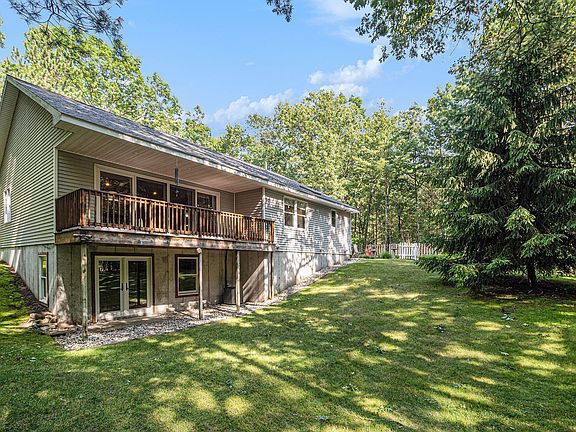 OPEN HOUSE Sunday June 30th, 12:30 - 2pm - Pentwater Township - Lovely 3 bedroom, 2 full bath ranch style home situated on a large, private wooded lot. Located across the street from Pentwater Lake and close to the public boat launch. This home features a spacious, open floor plan with natural oak hardwood floors, large primary bedroom suite with full bath and walk-in closet, and main floor laundry. Spacious kitchen with breakfast bar, dining room plus expansive living room with cathedral ceilings, gorgeous natural light and french doors to access the large deck where you can relax and enjoy watching the wildlife in your back yard. Two more bedrooms and a full bath, complete the main floor. Lower level walkout is unfinished and offers plenty of opportunity for additional living space or plenty of storage. Convenient 2 car attached garage. This home will delight you from the moment you walk in.