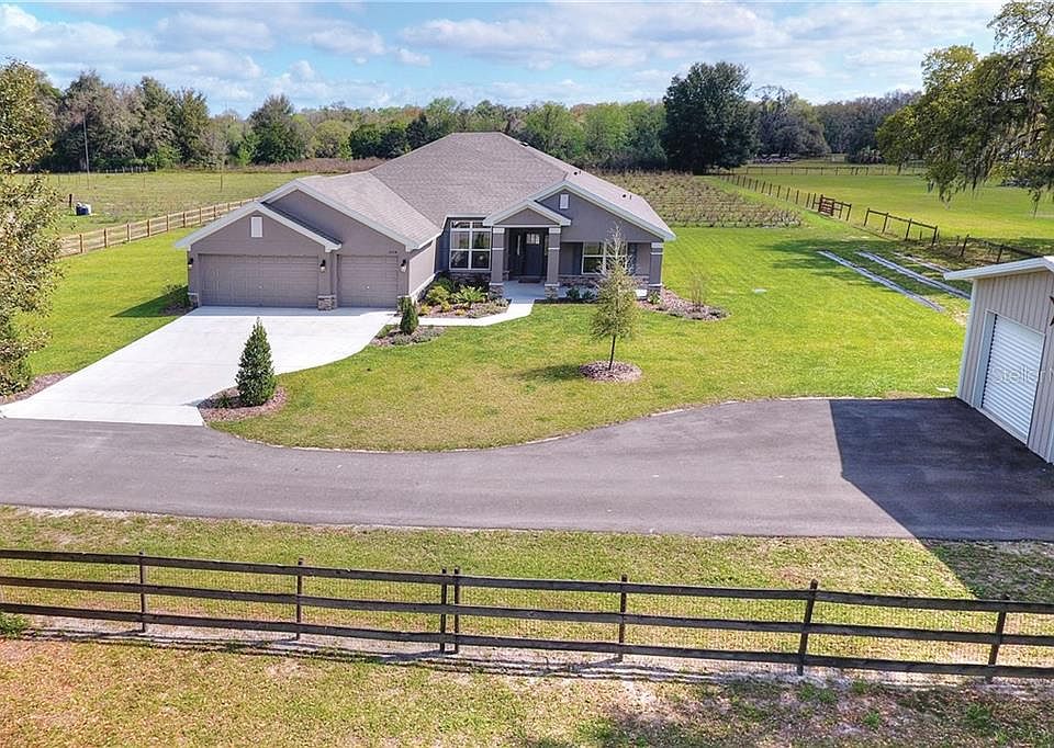 Built in 2019 and situated on 1.55 fenced acres in SW Lakeland, this fantastic home features 4 bedrooms plus office and 3 full baths, a 3 Car Garage and a detached 24x24 outbuilding. This home has all the upgrades: GRANITE & QUARTZ counters, tray ceilings, maple cabinets with soft-close drawers, 18-inch porcelain tile, gas (propane) for range, dryer and TANKLESS hot water, Nest thermostat and home is wired for surround sound and Cat 6 Ethernet cable...and so much more ! The 4th bedroom and bath make a perfect Mother-in-Law or guest suite and this bath has a walk-in tub/shower. There are custom interior doors, casing and baseboards and tilt-out sash low-e windows. Outside you will find 1.55 acres, complete perimeter fencing with a 12 ft gate, full yard irrigation with row irrigation for crop growing (currently blueberries), a deep well with Kinectico whole-house water softener and the 24x24x10 barn/building has two 9 ft roll-up doors and electricity.