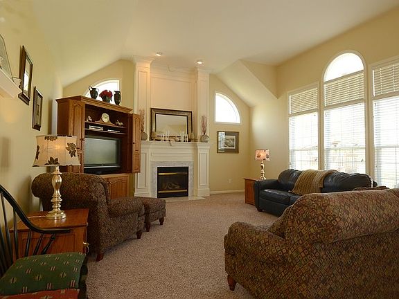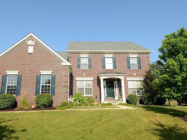 Welcome Home - beautiful inside & out. 2 story entry, LR or den, Large DR, great room w/vault ceiling, gas fireplace, beautiful wood trim, opens to a dream of a kitchen. Quartz counter tops, lots of cabs, island, desk, all appliances in kit remain, butler's pantry, backsplash. Breakfast room, entry, kit, 1/2 bath all have hardwood floors. Note bedroom sizes. Finished basement is nice & bright. Nicely landscaped lot, fenced back yard. Open Patio. All this & more - walking distance to school.