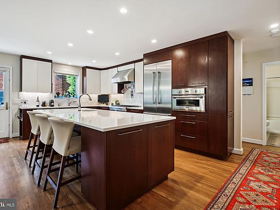 Welcome to 5724 Moreland St NW a gem located in the premier neighborhood of Chevy Chase. This thoughtfully redesigned and expanded home combines modern luxuries with tranquil spaces. Situated on a corner lot with plenty of parking and buffer space from the street, the home is graced by a stone walk way up to the expanded covered front porch perfect for a quiet afternoon’s reading. Once inside, you’re greeted by an expanded foyer and open concept main level. The main level boasts an open concept design. Wall have been removed and replaced to create seamless integration from the large kitchen, to the dining room to the living room and out to the patio. Beautiful hardwood floors are throughout. Extra square footage has been added with an addition built along back of the home to enlarge the dining room, kitchen and guest bedroom. Fully redesigned down to the studs, this chef’s kitchen is ready made for cooking and entertaining. The Kitchen has Thermador Professional stainless-steel appliances, tons of cabinet storage, two sinks, quartz counters and backsplash. In the center is a large island with bar seating a built-in microwave, outlets and more storage. The ample sized living room is full of windows which flood the room in warm natural light. Adjoining the living room is a large stone and trex patio is perfectly secluded by thoughtfully designed landscaping and ready for large gatherings or private retreats. A retractable awning provides shade and don’t miss the built-in hot tub! The main level is completed by 3 bedrooms and 2 full baths. Hall bath has been updated and expanded as has the Primary bedroom and bathroom. Primary bath has heated floors, an incredible amount of storage, two sinks and beautifully tiled luxury shower. Upper-level attic is access by a stairway and has loads of storage as well as finishing potential. A large attic fan provides bonus insulation by keeping the upper level temperate. Lower level has a large rec room with walk out access through the garage. Coming off of the rec room you’ll find a bedroom, full bath, laundry facilities and the wine room. Updates include, newer roof, larger gutters and downspouts, windows, kitchen, bathrooms, front porch and patio, radon remediation system and whole house water filter. Chevy Chase has long been one of the most coveted and sought-after DC suburbs to be in since its inception as a planned community in the late 19th century. With its perfect location, this home is close to everything while still in a tranquil close-knit neighborhood. Enjoy being close to nature with Rock Creek Park being mere block away or take a short drive to Lafayette-Pointer Park and Rec Center. With easy access to Military Rd, Connecticut Ave and Western Ave, shopping, attractions and entertainment are minutes away. Seller does require a contingency to find their home of choice. Home is in great condition but is being sold as is.