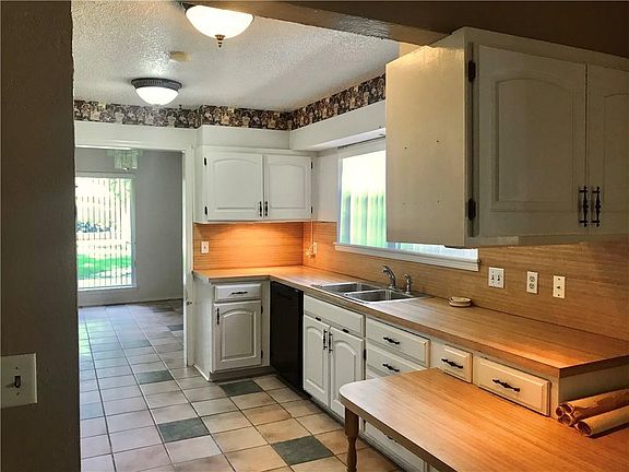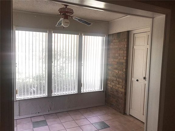 Large home ready for it's new owner. 3 great sized bedrooms, 2 1/2 baths and over sized 2 car garage. Spacious front porch is perfect sitting area and relaxing spot. Beautiful brick fireplace with gas logs or can burn real firewood. 2 living areas and large dining room. Sun room off of kitchen has another room perfect for large pantry, office or extra storage. Kitchen has an eating space, pantry, updated microwave, stove and dishwasher. Plenty of cabinets and counter space. Updated furnace and A/C unit and hot water tank. Vertical blinds throughout. No carpet in home, so very pet friendly. Spacious fenced backyard, .30 acre, with 2 storage buildings, huge patio and large pecan tree. Hot tub on east patio remains with property. Seller days it works but is not warranting it. Quiet neighborhood. Come check this great home out!!!