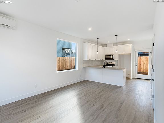 Phenomenal proximity to Woodstock's vibrant shops + restaurants where elevated design meets modern architecture with a 97BikeScore + where new construction is seldom seen! Impeccably designed, find neutral tones across this open concept floor plan boasting expansive windows for a light + bright feel with door out to spacious private, fenced patio with sought-after AC! High-end finishes grace each space with a custom kitchen featuring gorgeous, white cabinetry, slab counters, elegant tile backsplash + SS appliances. Sleek fixtures, stylish lighting, hard surface flooring + black metal railing finish out the 2 bed and coveted 2.1 bath interior! Near the hub of one of the hottest neighborhoods, find yourself just 0.07 mi to Brentwood Park + 0.3 mi to coffee + 0.6 New Seasons + so much more! Enjoy low HOA dues plus 1-year builder warranty with peace of mind from a local boutique builder! FHA FINANCING AVAILABLE! (List price is subject to the buyer qualifying for the Portland Housing Bureau - System Development Charge exemption program to promote affordable housing in Portland, call for more info.)