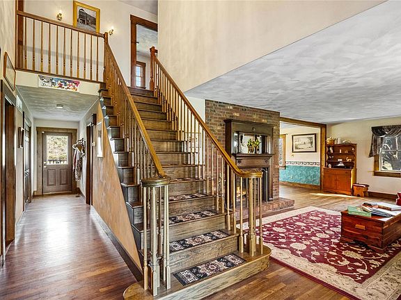 Welcome Home!! This one of a kind custom home on 10 beautiful treed acres is waiting for you. This park like setting is surrounded by hundreds of pine trees, open spaces and a two acre stocked lake. Picture yourself enjoying evening walks with a view like these or sitting around a bonfire roasting marshmallows or hot dogs. This 1 1/2 story house has an abundance of natural like, large rooms, great storage and a great place to call home. The brick wood burning fireplaces have unique antique mantels and offer additional heat in the winter. Upper level bedrooms have additional storage in the floored eves. Complete with a heated 26 x 40 detached 4 car garage, with 220 electric and workshop area. (Car Lift is negotiable) Don't let this one get away. Aeration serviced January 2024; HVAC 2017: Well serviced 2023; Stove 7 years old. HOA $200 per yr road maintenance.