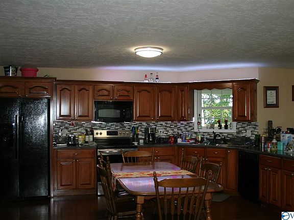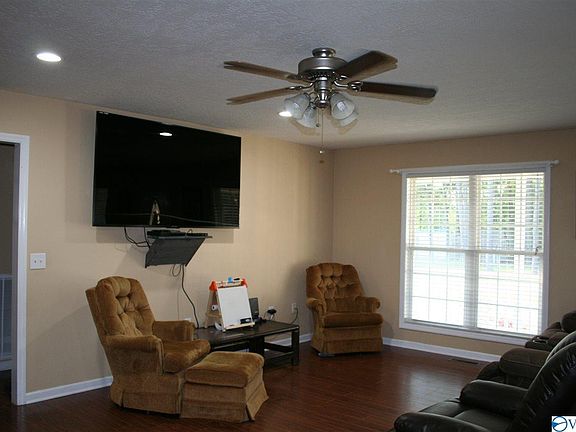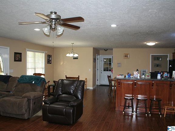 This split open floor plan 3 bedroom 2 bath home is situated on a large level lot in Hokes Bluff. The living room, kitchen, and the dining area are great in size but feel even bigger without walls. The kitchen offers black and stainless appliances, a high top bar, and a walk-in pantry! French doors lead from the living room to the covered back porch and private, over-sized backyard. The garage has a storage room, shelving, and a wash tub. This property also offers a detached storage building with electricity.