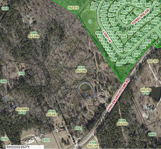 Flat 23 acres beautiful land with approximately 1 ac pond in the middle. 840' road frontage in thriving Grovetown. Lots of hardwood trees. 2100 sqft old family frame home on property could be restored. Property just outside of Grovetown City limits but can be incorporated into the City and have water & sewage. Currently zoned Residential - Agricultural. Close in with a pond! Build your dream home or potential development!