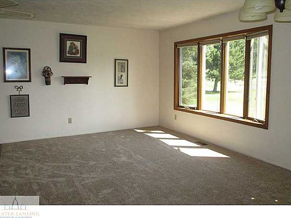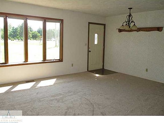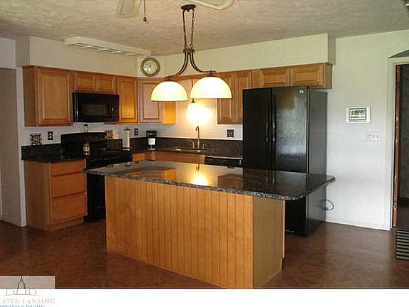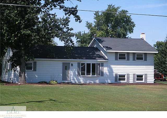 3 minutes to Village of Dimondale, ice cream cafe, hardware store, restaurants and local businesses. Maintenance free aluminum exterior and vinyl replacement windows on 2 stories of house. Roof replaced within 5 years on house and garage. Extra spacious garage with new door. Side door entry to mudroom area and convenient bath and laundry. Remodelled maple kitchen with newer black appliances and granite countertops PLUS large storage island with informal seating. Open living space to dining and kitchen with large picture window. First floor bedroom with walk-in closet PLUS additional closet. First floor bath with extra spacious vanity. Both bedrooms up are especially spacious with great closet space. L shaped family room with several daylight windows and wood burning stove in lower level. Nicely cared for home on a 1 acre lot close to town.