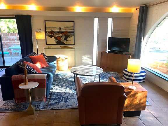 Enjoy sparkling city lights at night from this Spectacular Foothills Home. Featuring beautiful wormwood cathedral beamed ceilings and unique artistic brickwork! And the attached guest quarters is complete with kitchenette, fireplace and its own living room - and a private entry if preferred. Plus two master suites in the main house. Courtyards with views surround this amazing home. Relax on the full length covered porch and enjoy the city and mountains beyond. Privacy abounds! Large closets and plenty of storage. Contemporary concrete tile flooring, Burnt Adobe brick, brand new carpeting. A gorgeous home ready for you!