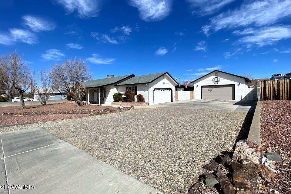 Beautiful 3 bedroom 3 bath home in Prescott Valley, Az with an attached 2 car garage and a detached 2 car garage! Great family home in a quiet neighborhood. Spacious home doesn't seem like it is 1266sqft. Flooring in the main living was recently replaced with vinyl wood snap in planks and they still have carpet in the bedrooms with plenty of life left. Open kitchen to dining room and living room. Private laundry room with access to the attached garage. Great backyard with a Jacuzzi off the back porch setting on an engineered trex deck porch. Wonderful section of synthetic grass for the kids to play (dogs are kids too). Custom built gazebo just off the detached garage setup for entertaining and family barbecues overlooking the rest of the back yard.