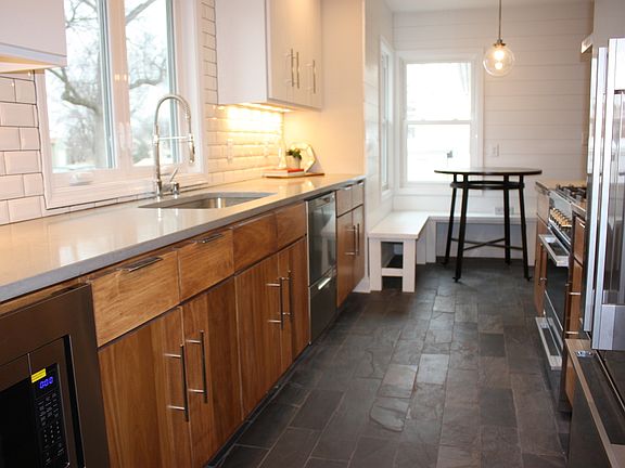 Impeccable and meticulous renovation to create a floor plan for todays lifestyle sitting on a double lot: 4 bed 2 bath with open living/kitchen/dining with mud room, brand new kitchen with high end stainless appliances, beautiful hardwoods, Breakfast area plus formal dining. Main level impressive master suite with its own heated heated and tiled sun-room and private, crisp 3/4 bath. Completely finished lower level with large family room, bath and fully tiled/finished laundry room. All newer mechanicals, Steal Siding, windows and huge deck overlooking a fully treed yard with a privacy fence, you can barely see the neighbors.