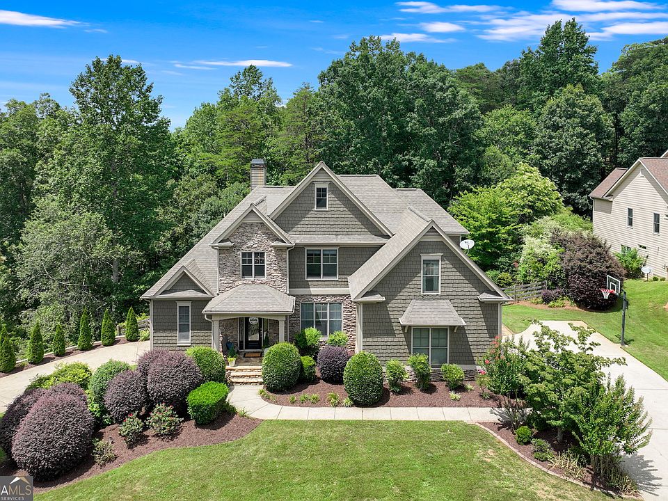 Welcome to this beautifully maintained 6B5BA home located in the highly desirable Ridgewater on Lanier community, featuring swim/tennis amenities and a private community dock on Lake Lanier for day use. Nestled on a lushly landscaped lot, this home offers a full finished basement with a complete mother-in-law suite, home gym area, and access to a paved lower-level driveway and garage. The main living area has an open floor plan, soaring ceilings, and an updated kitchen, stainless appliances and plenty of natural light. A screened-in porch is just off the main living space, with multiple outdoor seating areas, and a fenced backyard bursting with blooming flowers and mature fruit trees. It's the perfect setting for entertaining. Convenient to GA-400, as well as Gainesville's many shops and restaurants.