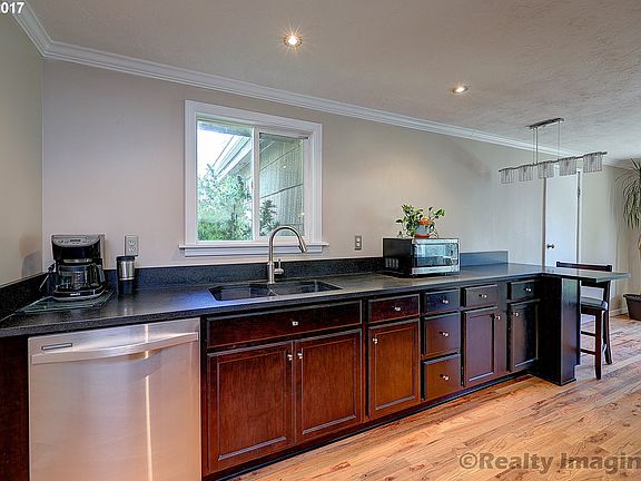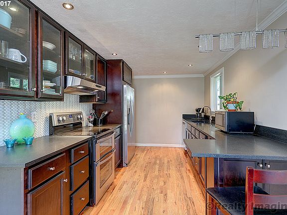 Cute as a button in Powelhurst-Gilbert!NEW ROOF!Hardwood floors,wood burning fireplace.Remodeled kitchen w/eat bar,stainless appliances,honed granite countertops,double ovens,glass front cabinets & double sink.Bedrooms have new carpet.Jetted tub in bath.Washer/dryer in attached garage.Fenced backyard w/2 patios & tool shed.New vinyl windows.Minutes to Raymond City Park,bus line, I-205 & services.Great for a first time buyer!