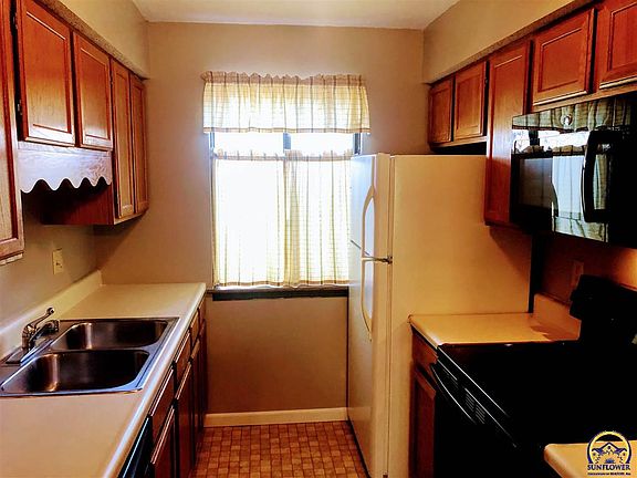 Bright 2 bedroom, 1 bath condo, in quiet community with covered parking. Fully updated w/ brand new range/oven, with dishwasher, microwave, and refrigerator. WB fireplace and adjacent covered patio looking out to the wooded greenbelt. Includes access to community pool. Walking distance to Target and other shopping. In Washburn Rural School District and only ten minutes from Washburn University. 2nd level.#4 Seller will install a new furnace before closing. AHS Warranty Essential Shield buyer's policy.