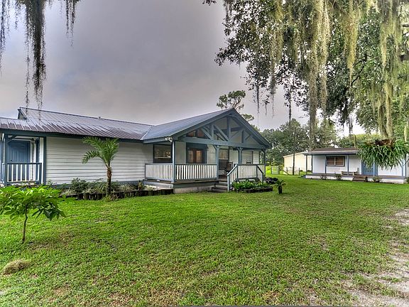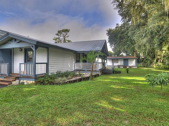 The possibilities here are endless! This beautiful custom built home sits on almost 10 acres with lush green pastures and grandfather oaks. Upon arriving home you are welcomed by the huge front porch, perfect for your rocking chairs and a glass of sweet tea in the summertime. The spacious kitchen features solid granite countertops and top custom cabinetry, a built in breakfast nook and an island complete with a wine cooler. The formal dining room is perfect for those large family dinners. The generous family room offers built in cabinetry, vaulted ceilings and a fireplace. French doors lead you to the screened porch out back overlooking the grassy pasture. The spa-like master retreat offers a large master bedroom complete with a sitting area, custom tiled bathroom with dual sinks, separate shower and a jetted tub. While this home is listed as a 2 bedroom there is a third room currently used as an office that could easily be converted to a bedroom. In addition to the main home, there is a mobile home, a storage building and a large metal garage/workshop on a slab with electric that could easily be converted to a barn if desired. The peaceful setting at the end of the road offers plenty of privacy. Additional acreage available for purchase as well, if desired. Call today for your private showing.