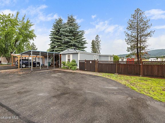 Welcome to your dream home! This newly remodeled and painted single wide manufactured home is a hidden gem, situated at the end of the park, ensuring privacy and tranquility. With open acreage on two sides, you'll enjoy breathtaking views a sense of spaciousness. The convenient location provides easy access to Rathdrum and Highway 53, making commuting a breeze. Step inside and be amazed by the modern upgrades and tasteful finishes that adorn this cozy abode. The carport and storage shed offer ample space for all your belongings and outdoor essentials. Best of all, the low lot rent makes this an affordable option without compromising on comfort. Don't miss the chance to call this charming home yours!