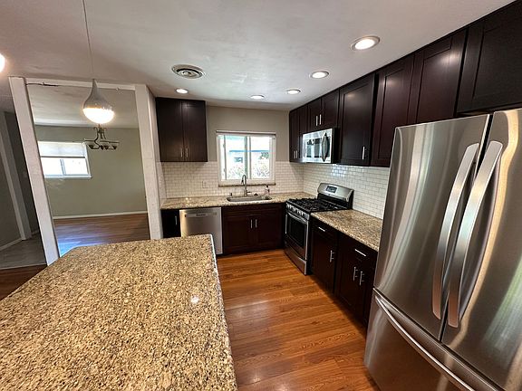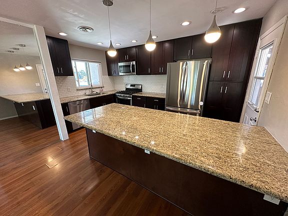 This one story, La Mesa gem has been tastefully updated with newer shaker kitchen cabinets, granite countertops, new earth tone carpet in the bedrooms, and fresh designer paint throughout the interior of the home. All three bedrooms feature ceiling fans and mirrored closet doors too. Outside you'll find a spacious and lush backyard with a covered patio and outdoor chimney. This house lives a lot larger than the square footage indicates, as the backyard and patio are an extension of the living space and where entertaining and dining al-fresco become routine.