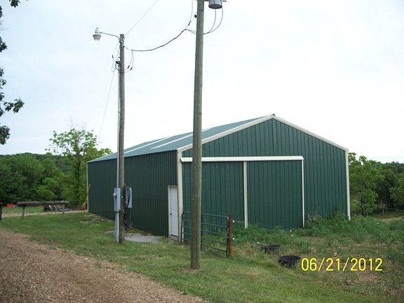 You wont believe the privacy of these beautiful rolling Missouri hills. The lane is gated and winding to the front door of this charming home. Your dream home features 4 bedrooms, and three full baths. The living room has a rock chimney that soars to the top of the vaulted ceilings and a rustic look to the fire place and custom mantle. The house features a huge main floor laundry room and big back yard deck for out door living. Mom will love the mud room located at the back entrance. The kitchen has lots of cabinets and ceramic tile floors with granite counter tops. Swing your cares away on the covered front porch swing as you enjoy the summer breezes. The home has a sophisticated outdoor wood furnace and is backed up by both electric and gas furnaces. The 3 acre pond is fully stocked and the horses will stay put in the fenced in pasture. The property has an over sized two car garage and the machine shed is big enough to also house the animals. This house has many extras!