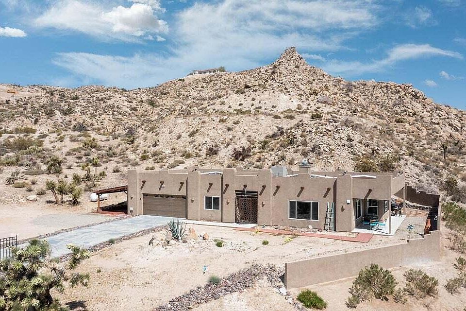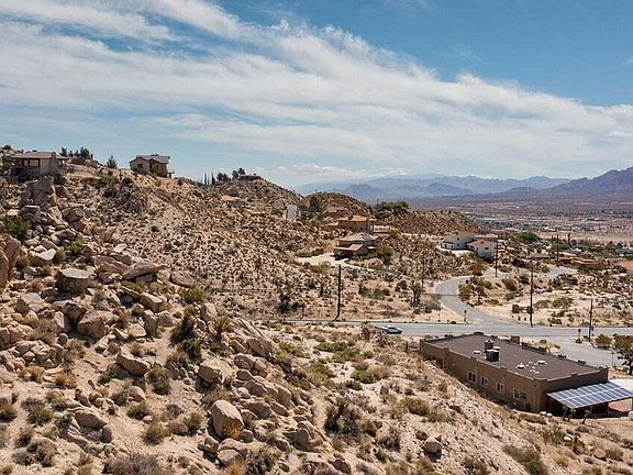 Hillside views! This beautiful home is move in ready for a new owner in Western Hills Estates surrounded by towering boulders and nestled on a spacious 0.73-acre lot. Breathtaking views of the twinkling city lights and majestic Joshua Tree National Park mountains. Enjoy the 1,904 sq ft spacious and open floor plan, boasting 3 bedrooms and 2 bathrooms. Upon entering, your gaze is immediately drawn to the grand and impressive kitchen adorned with high-end stainless steel appliances and a spacious pantry. As you enter the grand master bedroom, you immediately notice the elegant archway leading to the spa-like master bathroom, inviting you to relax and unwind. The master bathroom boasts a sleek and modern design, featuring a stunning glass-enclosed shower stall, tiled in rich brown hues, and a separate luxurious soaking tub. The home features two spacious and inviting guest bedrooms, both with ample closet space, and share a well-appointed full bathroom. The backyard of this home is a true outdoor oasis, featuring a large and spacious yard, surrounded by a towering concrete wall for ultimate privacy. Situated just a short drive away from an abundance of shopping centers and a diverse selection of dining options. 11 miles from the famous Joshua Tree National Park entrance where about 3 million people visit annually. Don't Wait - Call Now!