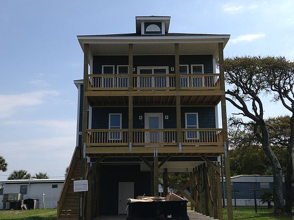 This is a new construction single family home for sale by builder. It has 4 bedrooms, 3 full bathrooms and is 1,629 square feet heated. It has parking and a large storage room located underneath it. It also has an elevator with a dry entrance located inside the storage room.