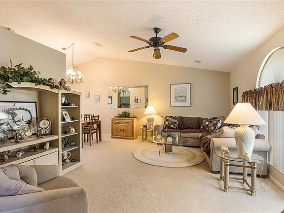 Updated 4 bedroom 2 bath pool home with 2347 sq ft. Updates to the home include newer roof, hurricane windows, paver driveway and pool area. The floor plan for this home is highly desired with split bedrooms, formal living and dining room and family room with vaulted ceilings and a wood burning fireplace. Kitchen offers wood cabinets, granite countertops and backsplash, breakfast bar, eat in area and stainless steel appliances. Dining room is nice and bright with French doors leading out to the beautiful pool area. The master suite is ample size and the master bath has a garden tub, shower and dual sinks with a new countertop. The house is set up to take full advantage of the outdoor living space. Screened in pool area has plenty of space with a covered lanai and also plenty of room to lounge around the pool. The backyard a great size and offers privacy. Security system, indoor laundry room,extra indoor storage area, two car garage with finished floor are some of the great features of this home. Lionshead is a quaint neighborhood with low HOA fees and excellent location to shopping and restaurants.