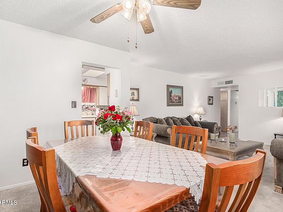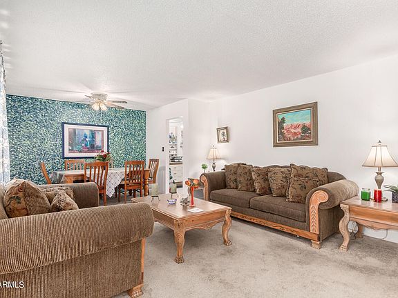 Charming, single-story home in NE Mesa 55+ community. Low maintenance front and back landscaping. Open floorplan, with dining area off the kitchen. All appliances included, window coverings & ceiling fans throughout. Kitchen is equipped with tons of cabinets, nice backsplash, matching appliances including a wall oven & microwave. Cozy Arizona room AND covered patio. Master bedroom has private bath and 2 closets. Enormous laundry/utility room with a deep basin sink, work bench, cabinets and shelving. This home offers TONS of storage. 2 storage sheds that have electricity to them. Community offers 2 clubhouses and 2 pools. Don't miss out on this home.