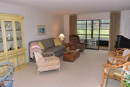 Nice condo with ground floor level for easy access in and out! This 2 Bedroom, 2 Bath condo is being sold furnished & includes a propane BBQ too. Nice open floor plan with good sized bedrooms. Enjoy the awesome view overlooking the golf course from the rear enclosed porch with vinyl windows for year round usage. The laundry room includes full size washer & dryer & the a/c unit that was replaced in Jan 2015. Come and enjoy all this community has to offer. Nice heated pool with plenty of room for relaxing & entertaining around the pool. Golf cart distance to the clubhouse, community pool, tennis courts, golf course & more. Maint. Fee includes lawn & landscaping maint, pool maint,building maint & building Ins.