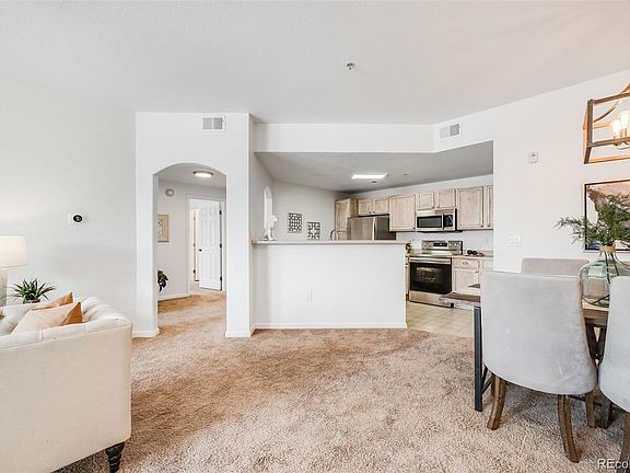 This condo has everything to love - an open layout (no tight-squeeze galley kitchen), spacious living space with a fireplace and designated dining area, two bedrooms and bathrooms (including a primary suite), in-unit laundry, fresh paint, professionally-cleaned carpets, and large east-facing windows to take in natural light each morning. Think this home looks good in the photos? It's not a bait and switch; it's just as clean and fresh in person. And when you step out onto the second floor patio, better than staring out over the parking lot, this condo overlooks the vibrant community lawn and pool area (bonus: east-facing means summer evenings are spent in the cool shade, and not in the burning heat). Newer furnace, central a/c, and water heater (all replaced in 2020). HOA spaces include an immense center lawn with community picnic tables and grills, kiddie pool, hot tub, swimming pool, fitness center, and community room. Location is a winner, too! 15 minutes to DIA drop off. 11 minutes to Costco. 7 minutes to King Soopers. 6 minutes to Gaylord Rockies Resort and Convention Center, 6 minutes to the Green Valley Ranch Rec Center. 5 minutes to the Green Valley Golf Club. We told you it has everything to love! See it today. // Property qualifies through Key Bank for 2 programs; Key Community Mortgage which offers 100% financing and a NO PMI loan program AND $5,000 toward closing costs prepaids through a Neighbors First KeyBank Grant. Contact Mortgage Loan Officer Tim Harbert at 720-607-8314 for full details.