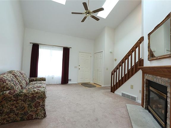 Improved Price! Bring all your fabulous HGTV and Pinterest ideas! Farmington Townhouse in Victor School district, NO HOA Fees and low taxes perfect if you are considering downsizing or still renting! The living room features cathedral ceiling, skylights, gas fireplace and open staircase! Formal dining room with sliding glass door leads to full glass sunroom overlooking deck and spacious grounds! Eat in kitchen with a walk-in pantry. HUGE Master bedroom with laminate floor, generous walk-in closet and dual access bath! Bedroom 2 features newer vinyl thermopane windows with interior grids and "window" overlooking the vaulted living room. Full basement. New hot water tank May 2020. Attached garage and long driveway with double wide near the garage offers plenty of parking for guests! Convenient to Thruway, Canandaigua and more.