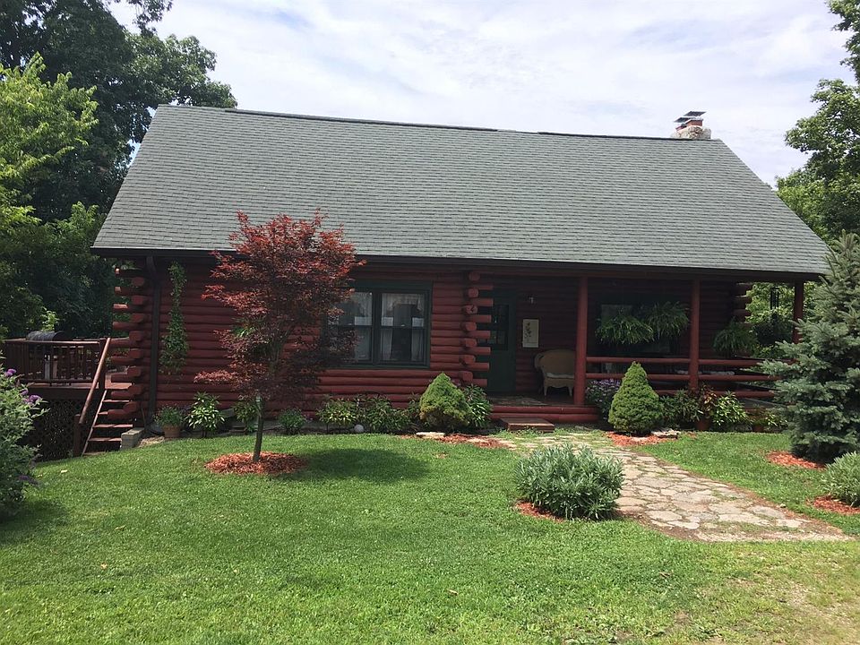 Beautiful log cabin in secluded area down a park-like lane w/valley views.Surrounded by wds-open field w/garden,frtg on Salem Rdg.Abundant deer,turkey,stkd pond in private setting.1st flr vaulted grt rm,stone fp w/new insert,wrap-around deck,greenhse,oak flrs.Fin LL-w/o,FR,wood stv,full bth,possible 3rd br,lg laundry.Upstairs-Mstr br,catwalk,full bth,wood flrs.Kit w/granite ctrs&updated fixtures.30x30 det gar,poured flr & sep elect,30x12 lean-to.All bldgs w/newer covrd gutters,30 yr. shingles. Hunt,Fish & Bird watch!