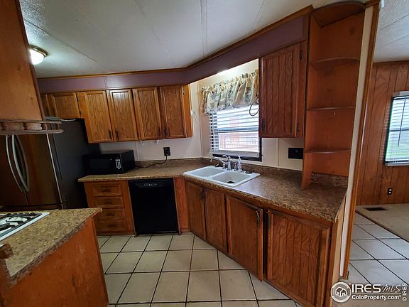 Great affordable home in dog friendly family park Alpine Vista Village in Loveland. 2 Bedroom, 2 bath home with open floor plan. Covered front porch and back deck to enjoy with the fully fenced yard. Forced Air heat and evaporative cooler. Front bedroom was updated 2 years ago with lovely laminate flooring. Plenty of natural light in this home. Come give it a look! Buyer to verify measurements & lot rent. People & pets to be approved in park prior to closing.