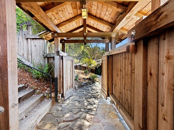 Only a short walk from Montclair Village, this rare and unique find is a charming retreat that offers a peaceful and inviting atmosphere. Breath taking views from the deck along with beautifully terraced hillside welcome outdoor lovers and gardeners. A two-level, wrap around deck provides plenty of space for company with multiple sliding doors. Inside is an open living room filled with natural light, a large stunning fireplace and one of a kind redwood interior features. The master bedroom flows into an office space with gorgeous skylights. Downstairs is a separate bedroom and bath with additional entrance. A separate studio space below the garage offers plenty of bonus space and has potential to be converted into an ADU. Only a short walk to Montclair Village and easy access to schools, library, and Sunday farmers market, with easy access to public transit and the freeway. www.5726ShepherdCanyon.com