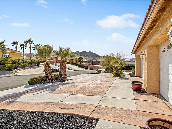 Outstanding Single Level Pool Home w/RV Parking in the prestigious Copper Hill community, and just minutes from Joshua Tree National Park’s West Entrance. Featuring 4 bedrooms (3 of them w/attached full bathrooms), a 3-car garage with large circular driveway, gated RV parking with a 50-amp service connection, panoramic mountain views, and a backyard you’ll absolutely love. Built in 2006, this home was designed for both comfort and style. A double-door entry welcomes you into a wonderful layout featuring high ceilings, elegant architectural details, and an open, airy feel. The formal living and dining areas provide a refined touch, while the family room with a dual-sided fireplace adds warmth and charm. The spacious kitchen features granite slab counters, a double-oven, stainless steel appliances, an island w/storage, and a breakfast nook. A well-positioned window above the sink, and a sliding door off the formal dining room invite you to experience beautiful West facing views and sunsets. A 2nd sliding door off the kitchen opens to an outdoor covered seating area, which is also accessible from a 3rd sliding door found in the primary bedroom. This home masterfully blends indoor and outdoor living for maximum enjoyment. The primary suite is extra spacious, complete with both a walk-in and standard closet, a dual sink vanity, a jetted tub with separate tiled shower, and direct access to the covered patio and fenced pool area. The secondary bedrooms are generously sized, and You’ll Love the Direct Bathroom Access for 3 out of the 4 bedrooms. An inside laundry room is convenient and leads to an expansive 3 car garage. Out back, your private oasis awaits! Enjoy a baja shelf entry pool, spa w/spillover, fire pit, BBQ island with an outdoor kitchen, and a pergola - perfect for relaxing or hosting guests – all set against the backdrop of stunning desert sunsets. Low-maintenance landscaping, low taxes, and no HOA make this home both practical and cost-effective. This home is perfect as a primary residence, vacation home, or turnkey Airbnb. Don’t miss out on this incredible home!