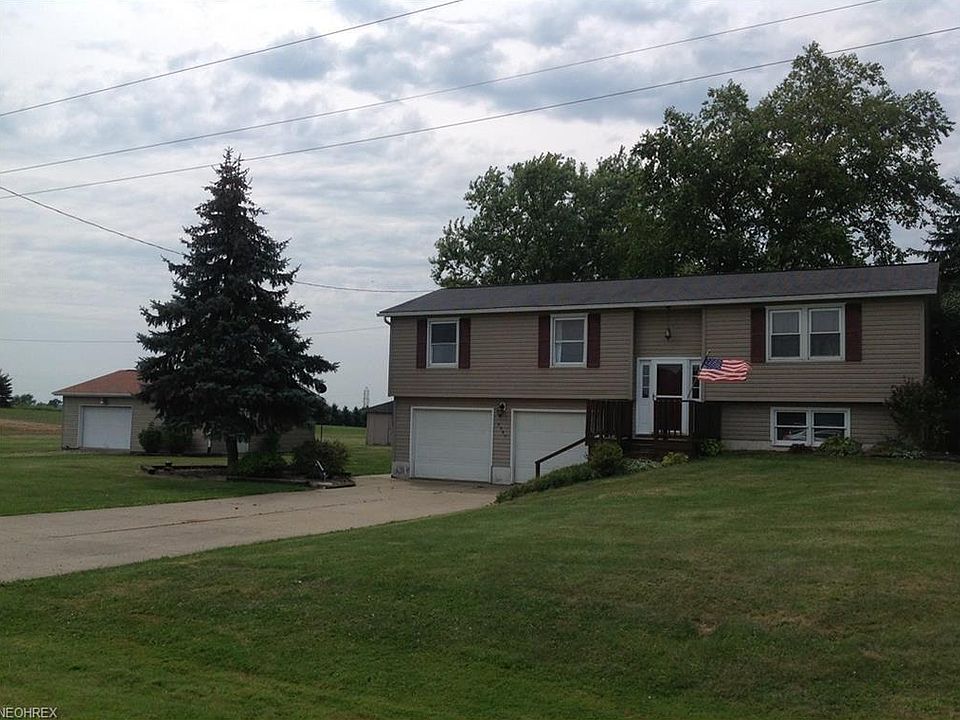 Country living at its best! Very nice home, mostly redone. Nice kitchen with plenty cupboards and counter space, with great work area. Dining area has sliding glass doors that go out to a 2 tier deck. Deck leads to a private back yard. Kitchen and dining both have ceramic floors. Spacious living room with laminate floors. Enjoy the new carpeting in the bedrooms. Lower level consists of a wide open rec/family room with ceramic floors. 2 car attached plus an additional 2 car detached garage that has office area. Cement drive. Very nice covered patio. All sq. ft. and room szs estimated.