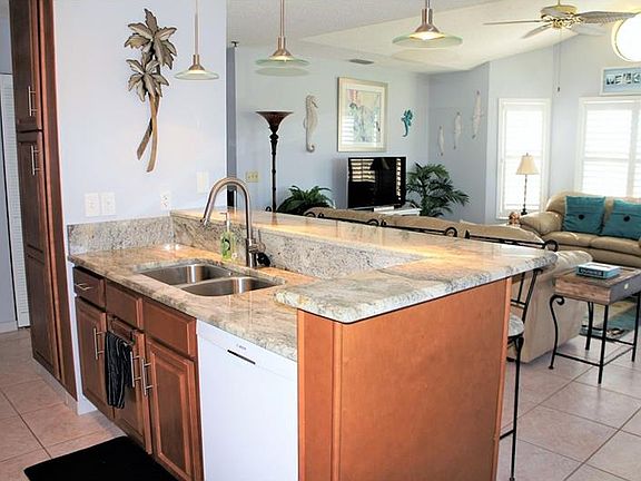 Enjoy watching sunsets from this 3rd floor condo with fantastic views from 2 balconies! This home has been completely remodeled and meticulously maintained. The kitchen has been updated with custom cabinetry, granite counters, updated lighting and newer appliances. Plantation shutters throughout the main living areas are the perfect touch to this light, bright condo. Both bathrooms have been upgraded with new vanities and granite counter tops. Master bath features double sinks and a walk-in closet. This unit has its own boat slip with a 8,000 boat lift. Under building parking (with an oversized spot) and easy access to the elevator, make for ideal condo living. The Mariner's Way condo community has its own community pool and owners have access to Gulf Landings amenities (clubhouse, boat launch, tennis) and Gulf Harbor Beach Club with minimal fee of $144/year. This home is ideal for both year round and seasonal residents alike. Gulf access and water views for under $150k! Call to schedule your showing, this one won't last long!