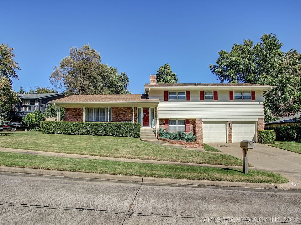 Roof new 11/19! Split level on a pretty cul-de-sac. Lower level family room 2/ fireplace, 1/2 bath and utility room. Middle level is kitchen, formal living & dining. Upstairs are bedrooms and baths. Storage everywhere. Good closets and room sizes. Large fenced and updated terracing in the backyard. Big garage, sidewalk in front.