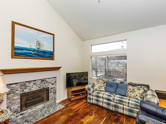 Beautiful 2 bedroom 2 1/2 bath home with views situated on a hillside in Bonsall. Fabulous floor plan with two master bedrooms both having en-suite bathrooms. Remodeled kitchen with granite counters and tile backsplash and custom Knotty Alder wood cabinets with slide outs, stainless appliances. Gorgeous hardwood floors throughout , soaring vaulted ceilings in the living area, extra powder room/bathroom downstairs for guests. Enjoy beautiful hillside and San Luis Rey Racetrack views on your spacious low maintenance stamped concrete patio. Laundry is conveniently located upstairs that is large enough for a full-size washer and dryer. This home is just steps away from the community pool. HOA dues includes WATER & TRASH.