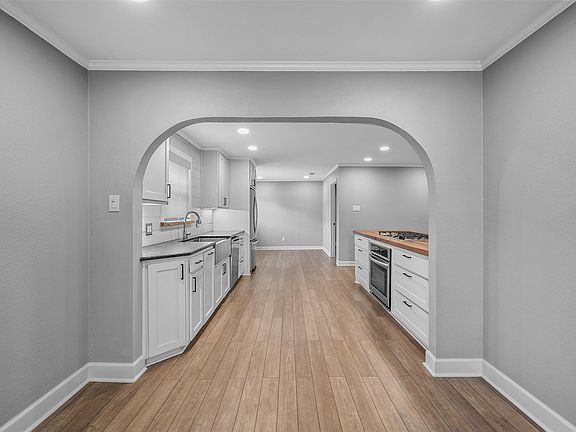 Welcome to this beautifully updated home that combines timeless character with modern comfort. From the moment you arrive, you’ll be greeted by a stunning brick entryway with arched doorways leading into an open floor plan that’s perfect for both everyday living and entertaining. The spacious kitchen is a chef’s dream, complete with a gas cooktop, butcher block island, granite countertops, and a large stainless steel sink. Two separate dining areas provide flexibility for both casual meals and formal gatherings. Relax in the cozy den featuring a gas fireplace and French doors that open to the covered back patio, ideal for enjoying the outdoors year-round. The large utility room offers incredible convenience, equipped with a washer and dryer, plus a second refrigerator with freezer that conveys with the sale. The primary suite is a true retreat with a master bathroom fully remodeled in 2025, showcasing a tiled walk-in shower, quartz countertops, and modern finishes. The other two bedrooms feature a Jack and Jill bathroom. Down the hallway, a built-in linen cabinet adds a thoughtful touch of storage and charm. The exterior features of this beautiful property nestled in a double cul-de-sac in a nice, quiet neighborhood are a two car attached garage, a sprinkler system for easy lawn care, a garden area and even a chicken coop for hobby farming or fresh eggs right at home!