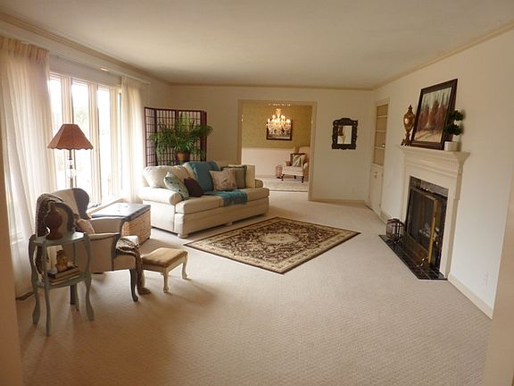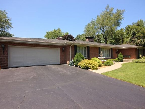 Timeless estate tucked away on 1 ac lot. This brick ranch is an entertainer's dream with its open floor plan, elegant dining room, and walk out sun room to large patio. Fully renovated with custom touches and impeccable style throughout including hand-painted wallpaper, crown molding, beamed ceilings, built-in bookshelves, and fireplaces. Three spacious bedrooms with generous closetry and new paint. Convenient main floor laundry, new AC/Furnace in 2013, and roof in 2005. Beautifully maintained landscaping with Italian fountain accenting the front gardens. Private setting-convenient location.